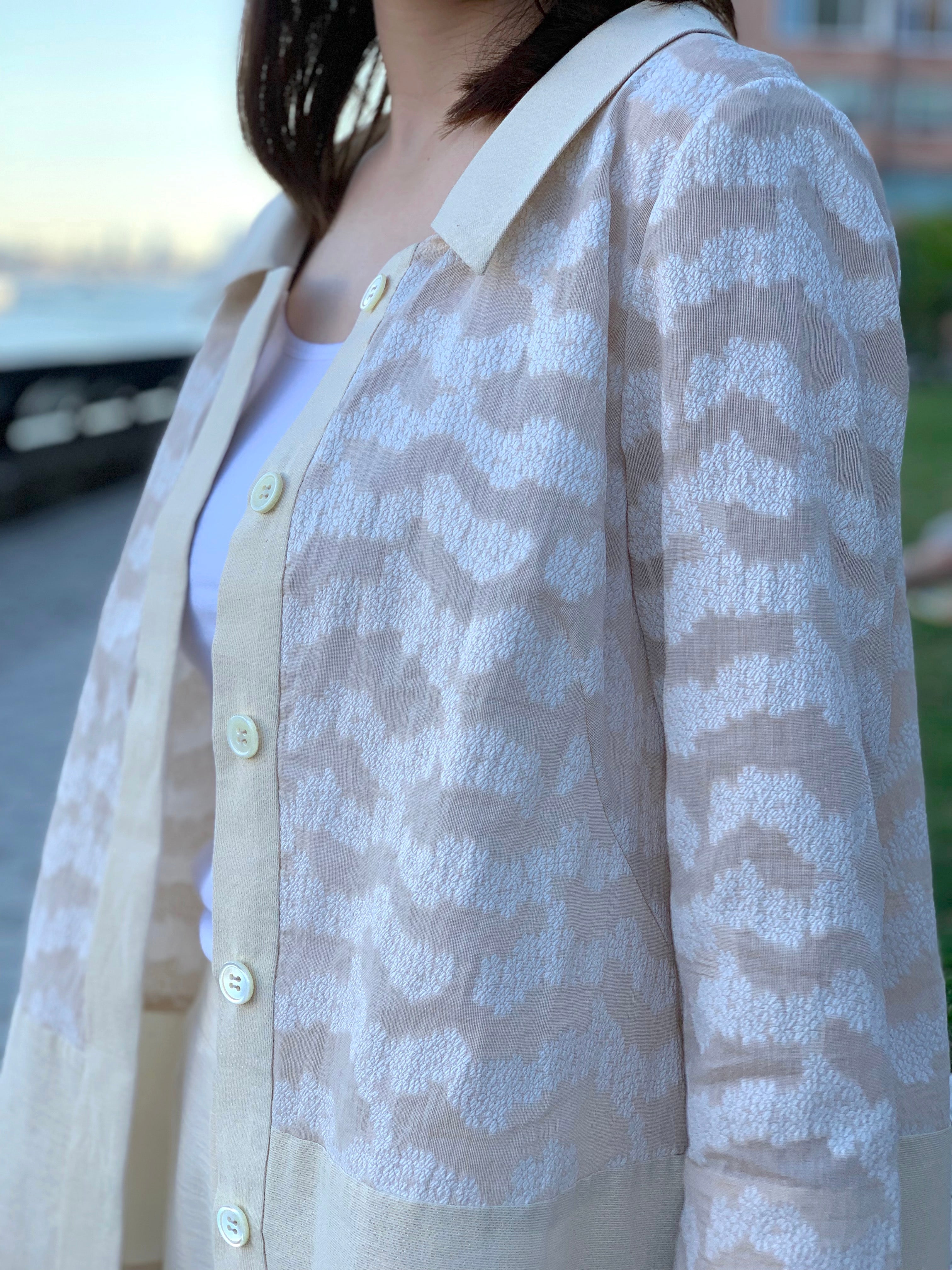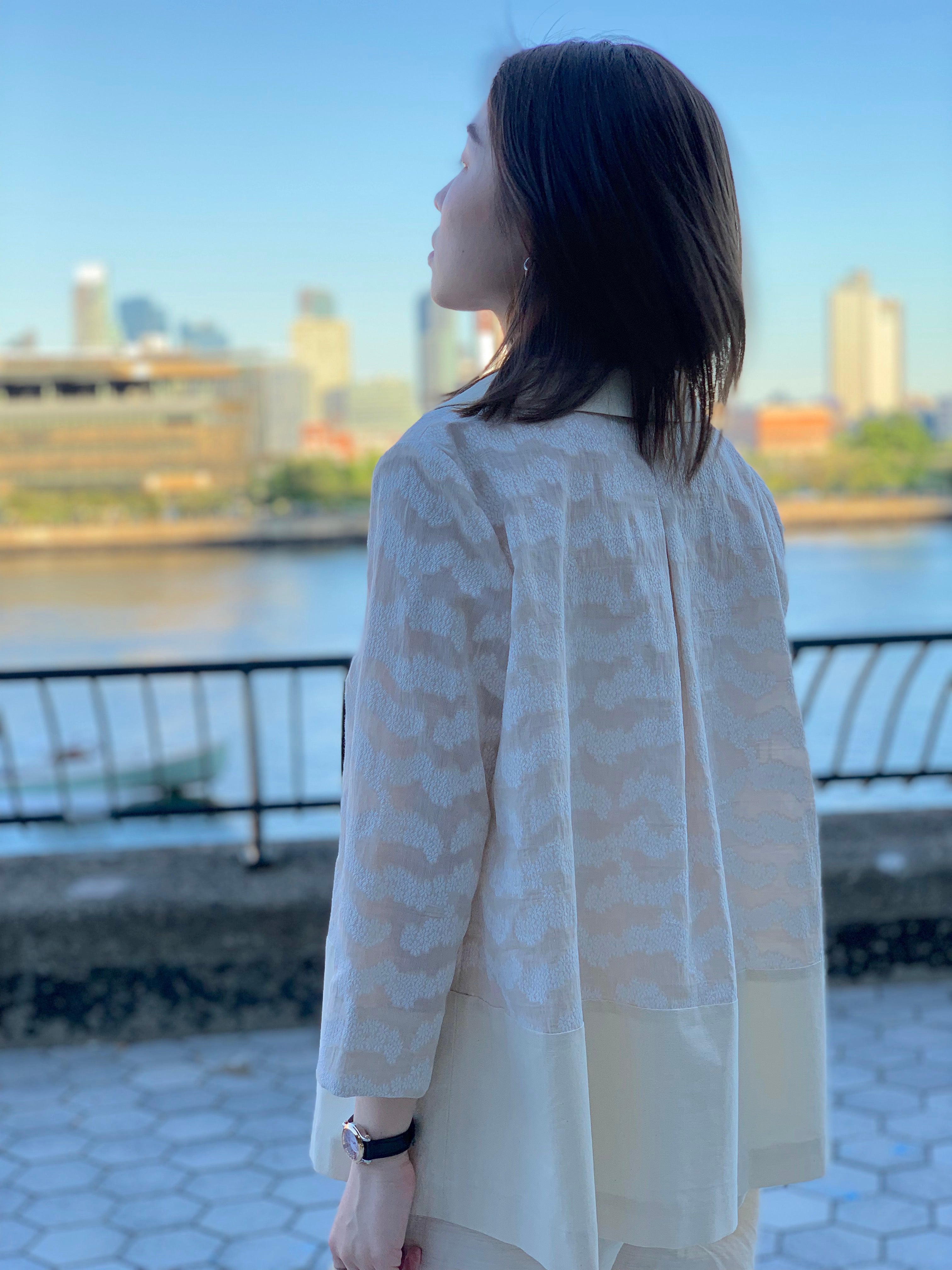 ネイビーとフロストフローラルのカーブパネルジャケット