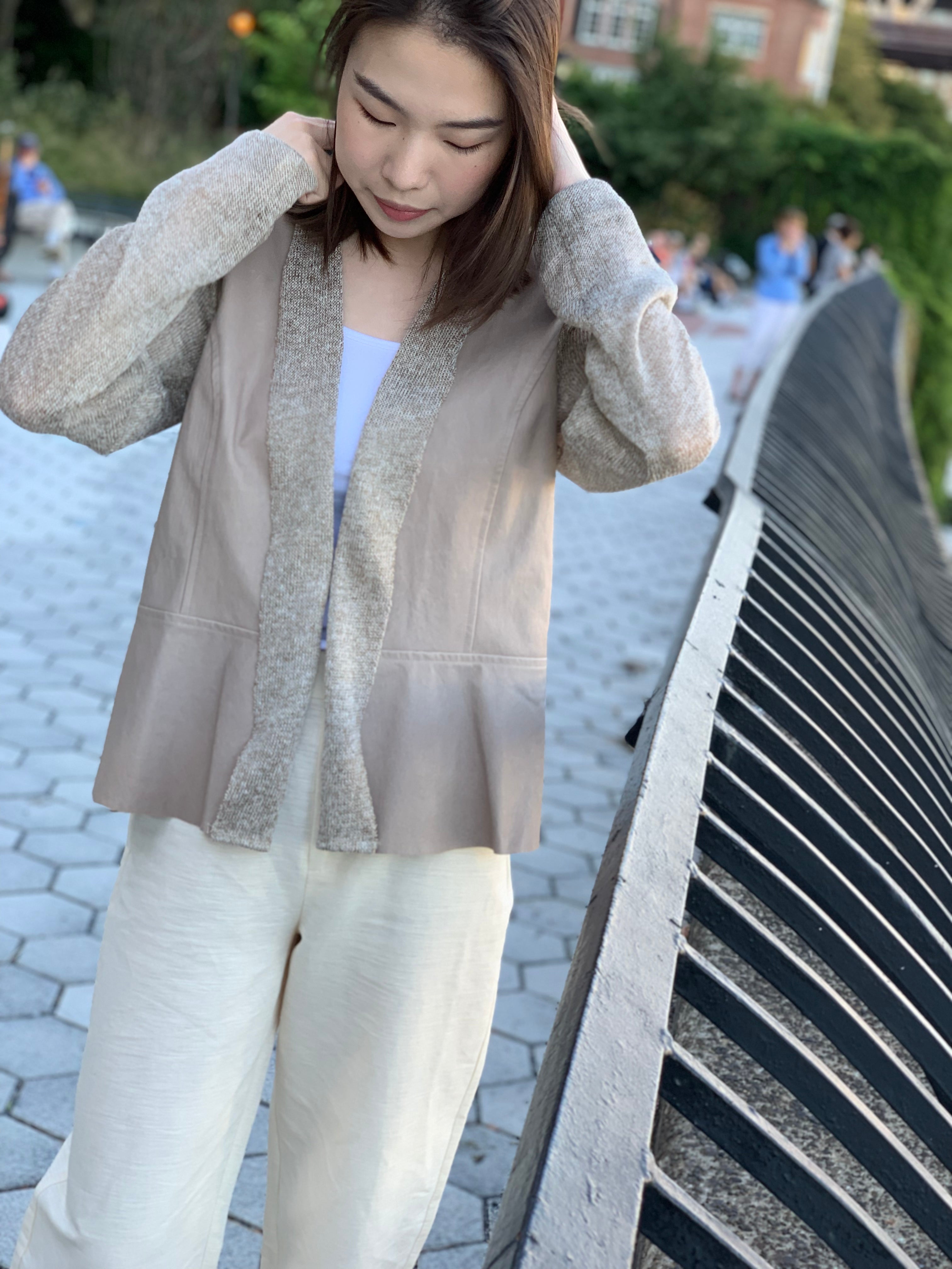 ブラック&ホワイトフローラルフロントフリルジャケット